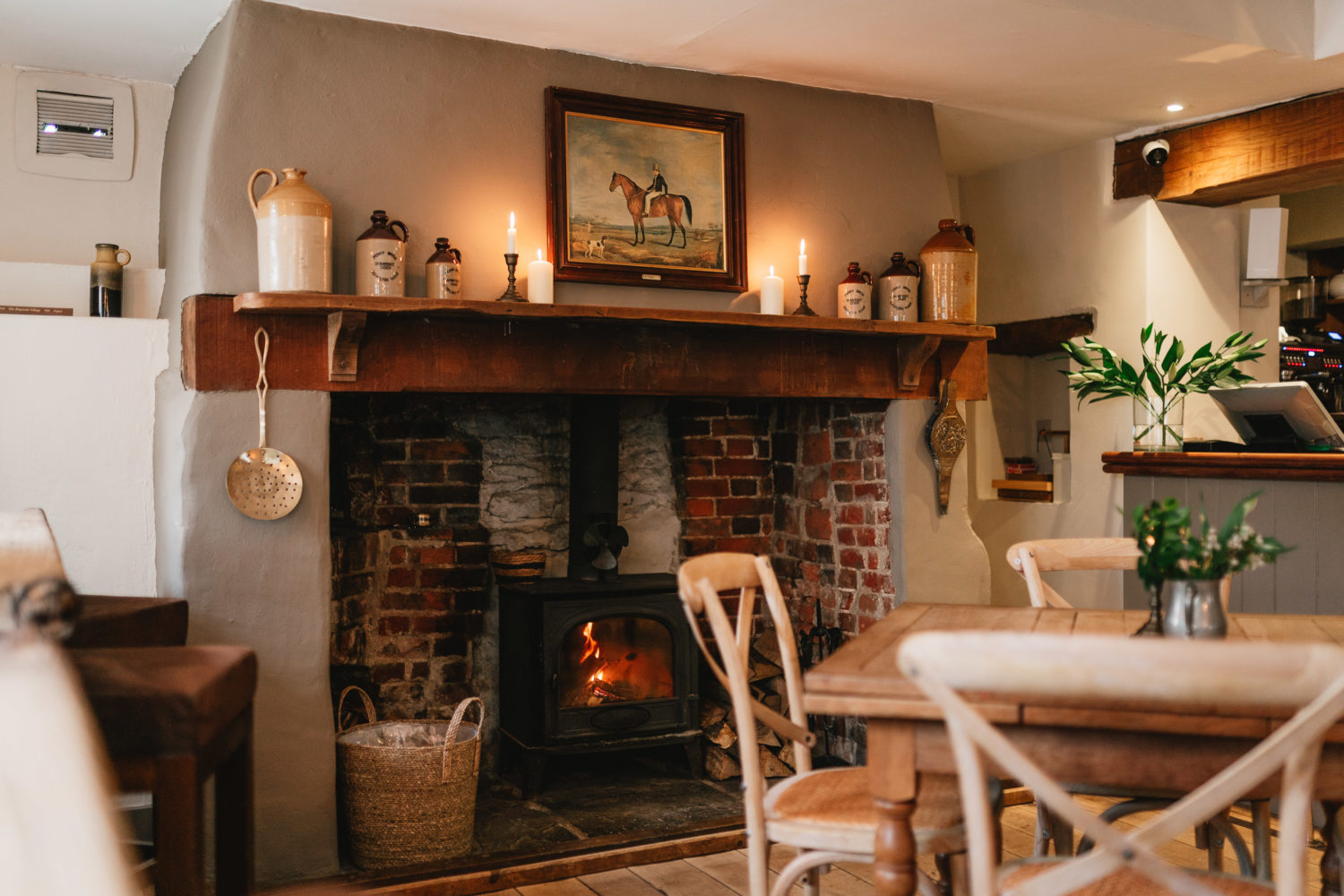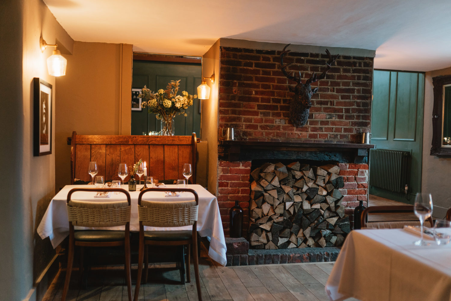 After a memorable meal, the only sensible next step is somewhere equally inviting to settle in and stay awhile. Just a mile away, its sister pub, The Crown at Benson, offers precisely that. Part of The Crown’s charm lies in how naturally it belongs to its community. From the moment you step inside this Historic South Oxfordshire Village Pub, you feel warmly welcomed, and you will notice two things immediately. First is the magnificent inglenook fireplace, home to two of the best seats in the house. The second is the gentle flicker of candlelight and small vases of flowers all over the pub. There is an unmistakable charm to the space.