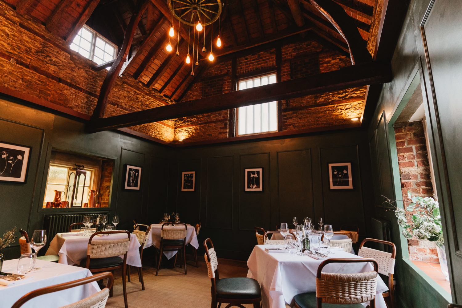 Inside, the atmosphere delivers precisely what one hopes for from a winter weekend away. The cosy corners, the gentle drama of roaring fires, and the generous welcome of muddy boots and well-behaved dogs alike. It is in the thoughtfully positioned dining spaces, however, that the team truly excels. This is a dining experience that is designed to be intimate. With beautifully set tables, alongside fireplaces and deep-set windows set into thick, century-old walls. There is also a dining area crowned by a beautifully vaulted ceiling which is perfect if you are gathering a larger group too. This is a place that is designed for long and enjoyable meals.