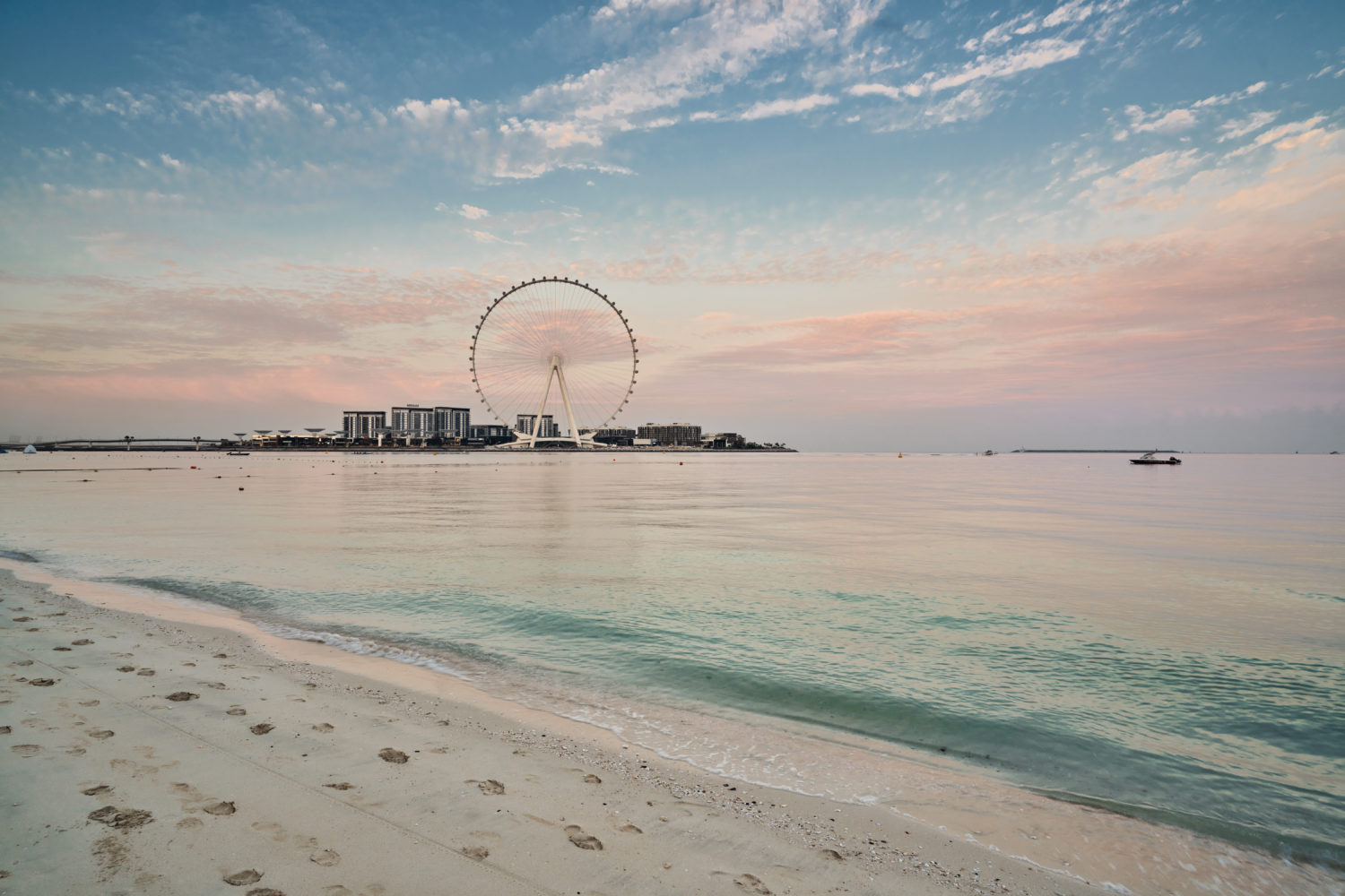 After a long flight, we were eager to check into our room. It was on the nineteenth floor – there are thirty-five in total – meaning the view as we opened the door was something that stopped us in our tracks. Wall-to-wall and floor-to-ceiling glass overlooking the beach and the Ain Dubai – the world’s tallest ferris wheel – made for a spectacular view.