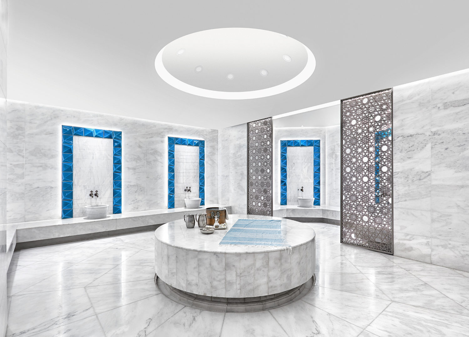 The Azure Beach club is adults-only, has a DJ playing all day, and really brings the buzz. It even has a couple of ice baths available to guests, as well as separate cabana-style buildings complete with air conditioning, fully stocked fridges, and private plunge pools.