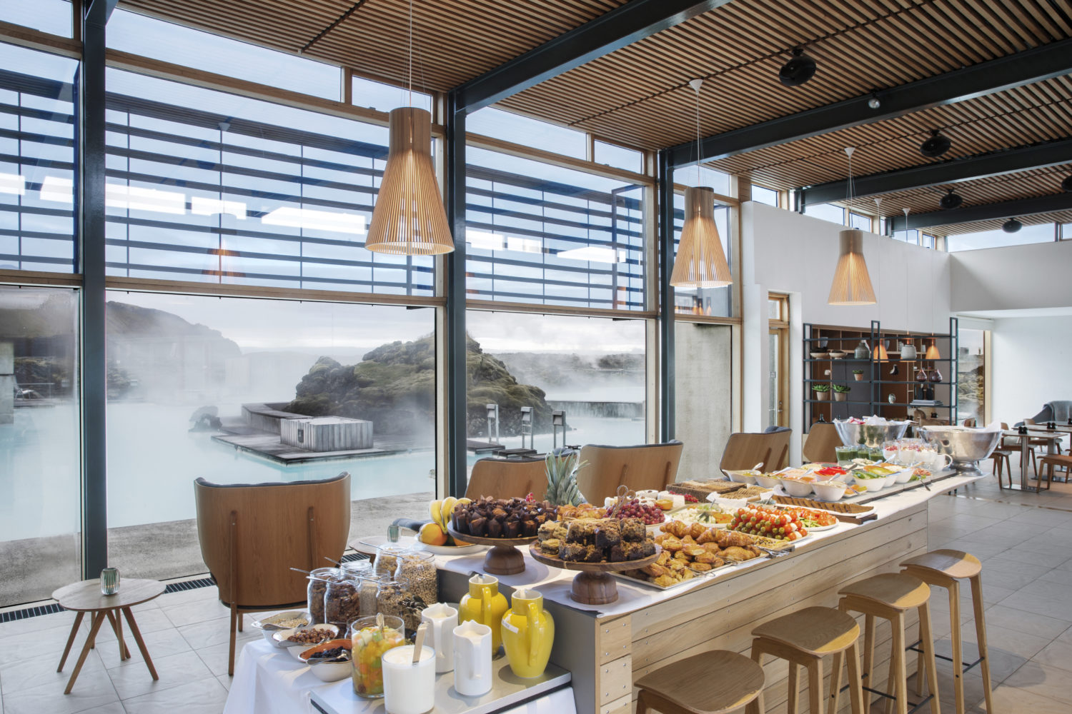 Evenings are best spent at Lava Restaurant, built into the side of an ancient lava cliff and overlooking the very lagoon where the day has been enjoyed drifting into stillness with flotation therapy, and moving between silica and algae treatments at the mask bar. By the time you take your seat, the body is relaxed, and the mind unhurried. The dining room opens onto the lagoon’s soft glow, and the menu leans into Icelandic ingredients with beautifully presented seasonal dishes. It’s a perfect transition from the quiet water immersion to an elegant meal enjoyed on volcanic earth.