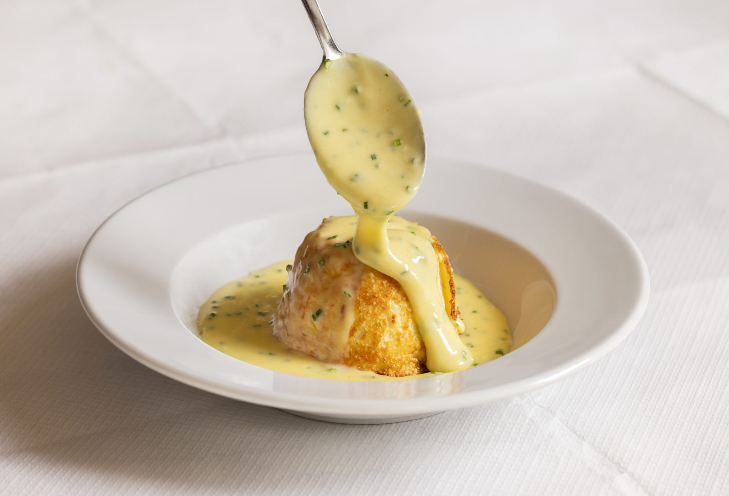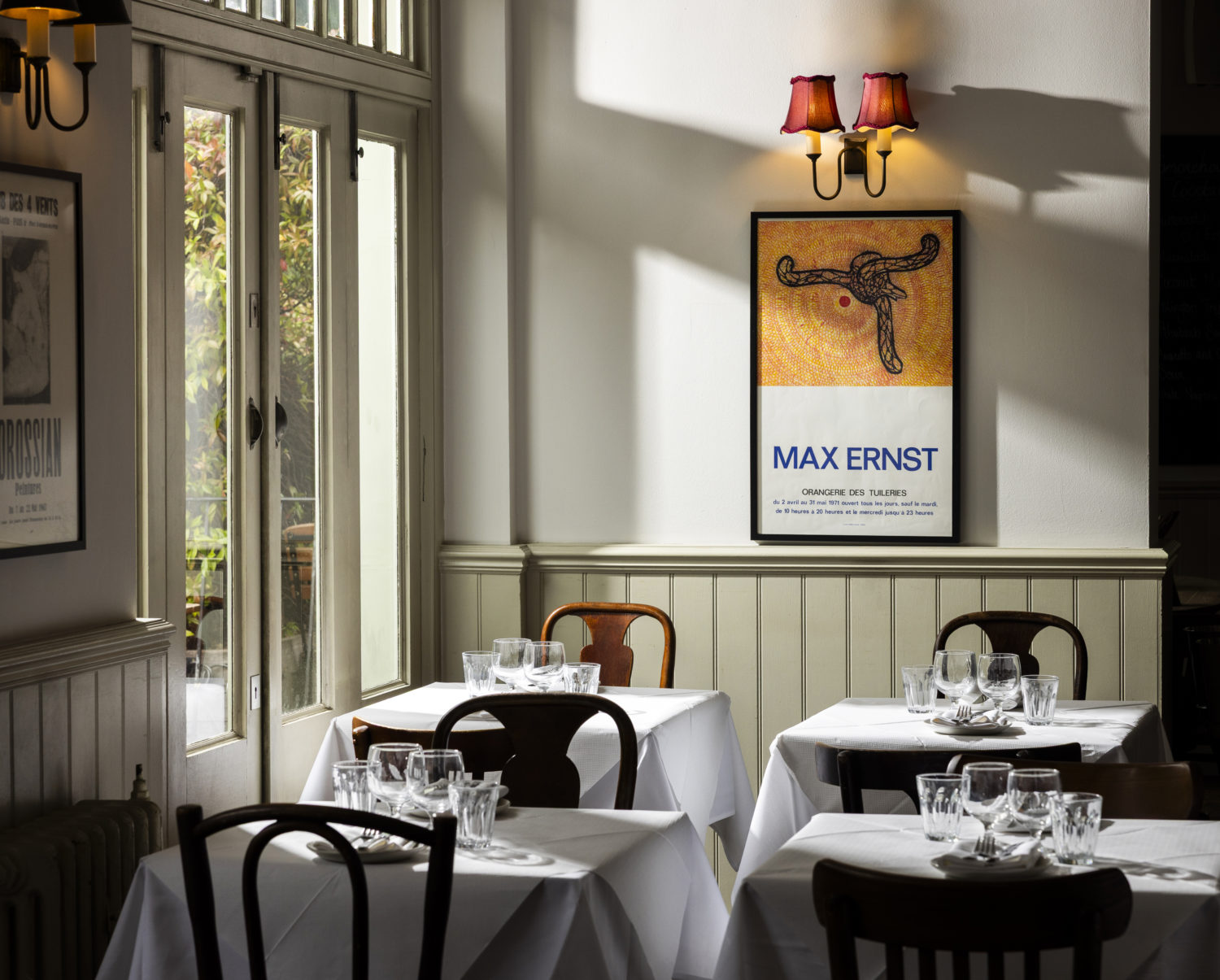 From the moment you step inside Bistro Sablé, the atmosphere at is already in motion. Every table is taken, the room alive with conversation and the gentle theatre of a dining room in full flow. Candles drip languidly into golden dishes, their flickering light catching on glassware and cutlery, while somewhere nearby a fire roars steadily, anchoring the space in a kind of timeless comfort. It is busy, yes – but never chaotic.