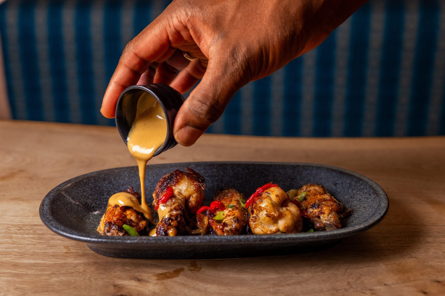 The £47 set menu changes regularly and works for sharing. You hear it in the room – friends and families leaning across the table, negotiating over the last piece of chicken. Fried plantain arrives dusted with bissap salt, the floral note lifting the sweetness. Bread with tamarind butter does something similar, introducing a gentle sourness to what might otherwise be familiar. Ndambe Teranga bites – neat tartlets of black-eyed pea stew – offer warmth in a single mouthful. Thiou Boulette, usually a stew, is reworked here into refined fishballs resting on a rich tomato sauce that tastes slow and settled.