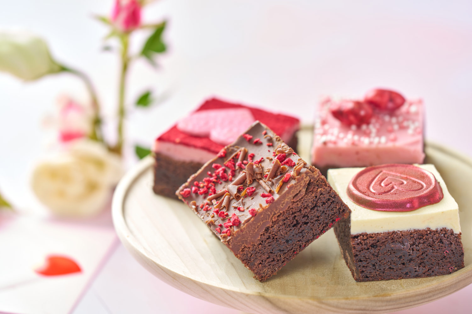 These vegan and gluten-free Valentine’s cupcakes come in vanilla and fudge flavours, finished with vibrant pink and red vegan buttercream. A delicious inclusive option that ensures everyone can enjoy Valentine’s Day treats.