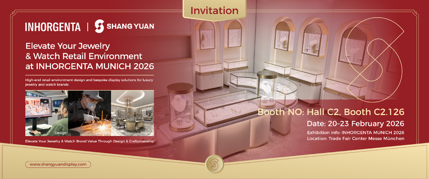 Shangyuan Display, a leading provider of jewellery store design, jewellery showroom design, and full-store custom display solutions based in Shenzhen, China, will make its debut at INHORGENTA MUNICH 2026, Europe’s premier trade fair for jewellery, gemstones, and watches. Scheduled for 20–23 February 2026 at the Trade Fair Center Messe München, the company will showcase integrated retail concepts, bespoke jewellery showcases, watch showcases, glass jewellery display cabinets, and jewellery display counters at Hall C2, Booth C2.126.