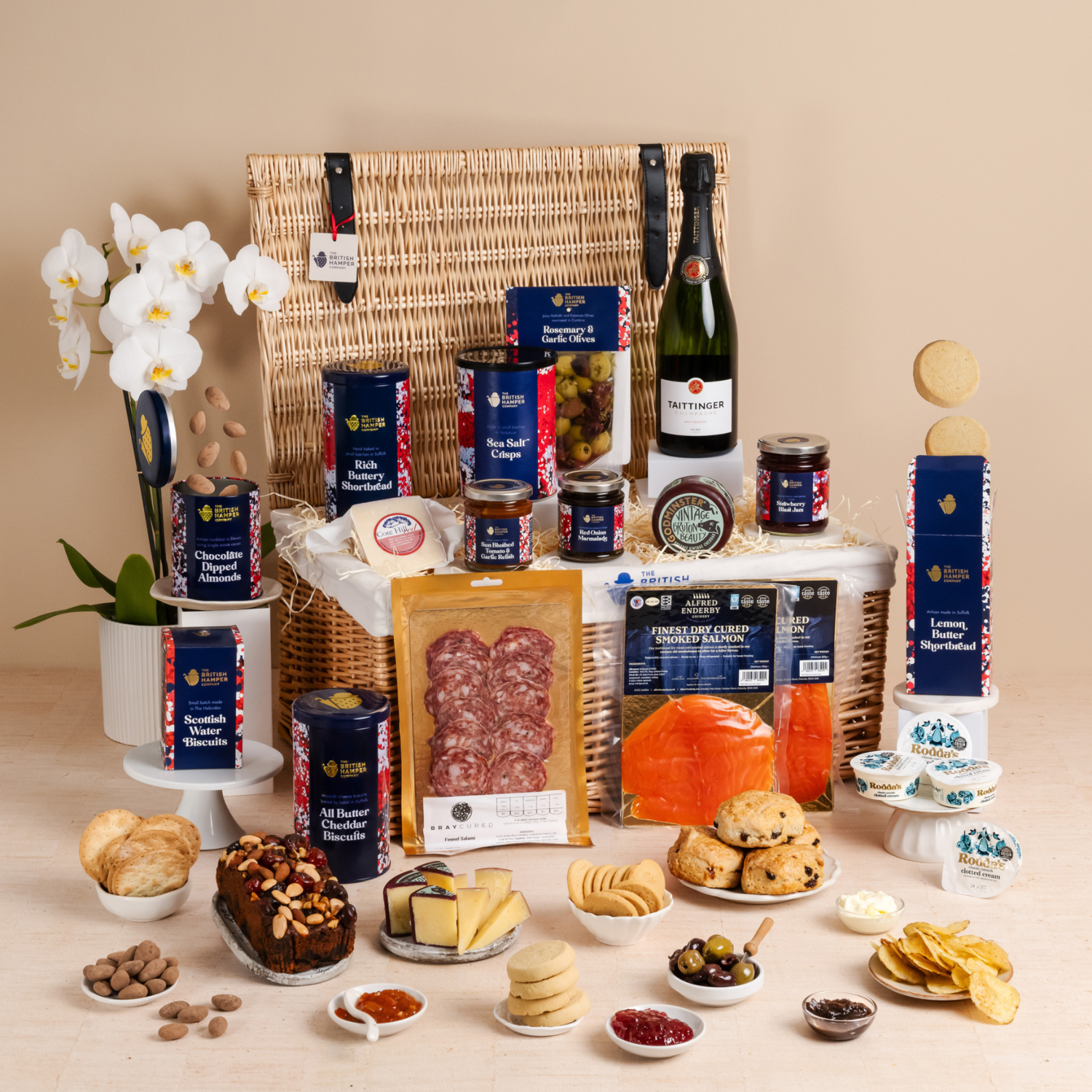 Few gifts capture the spirit of romance quite like a perfectly curated picnic in bed or at home, especially one as extraordinary as this by The British Hamper Company. Inside this hand-woven wicker basket of wonders is a bottle of Taittinger Brut Réserve that is just waiting to be put on ice with a carefully chosen selection of quintessentially British artisan delicacies, from smoked salmon to vintage cheddar, clotted cream scones and chocolate-dipped almonds.