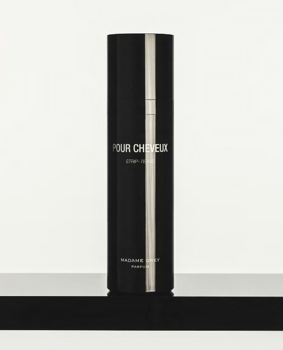 Alongside it, the signature scent is reimagined as Pour Cheveux Strip-Tease, a lightweight hair mist designed to leave a delicate trail of fragrance while enhancing shine. Formulated with glycerin, aloe vera, chamomile and green tea extracts, it brings a softer, more diffused expression of the original composition.